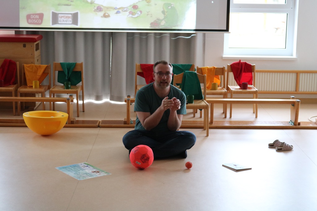 Im Mittelpunkt seiner Besuche stand jeweils ein Bilderbuch, das als Bilderbuchkino auf einer Leinwand betrachtet und gleichzeitig von ihm in Gebärdensprache übersetzt wurde. Die Kinder verfolgten gespannt die Bewegungen seiner Hände und seiner sehr ausdrucksvollen Mimik und Gestik.