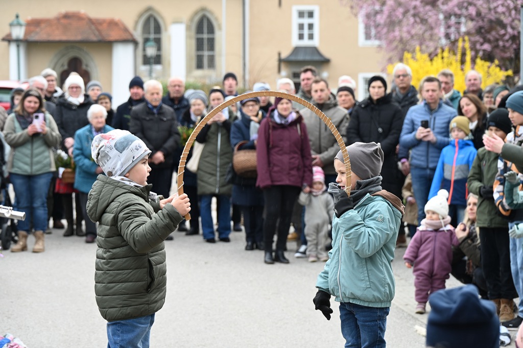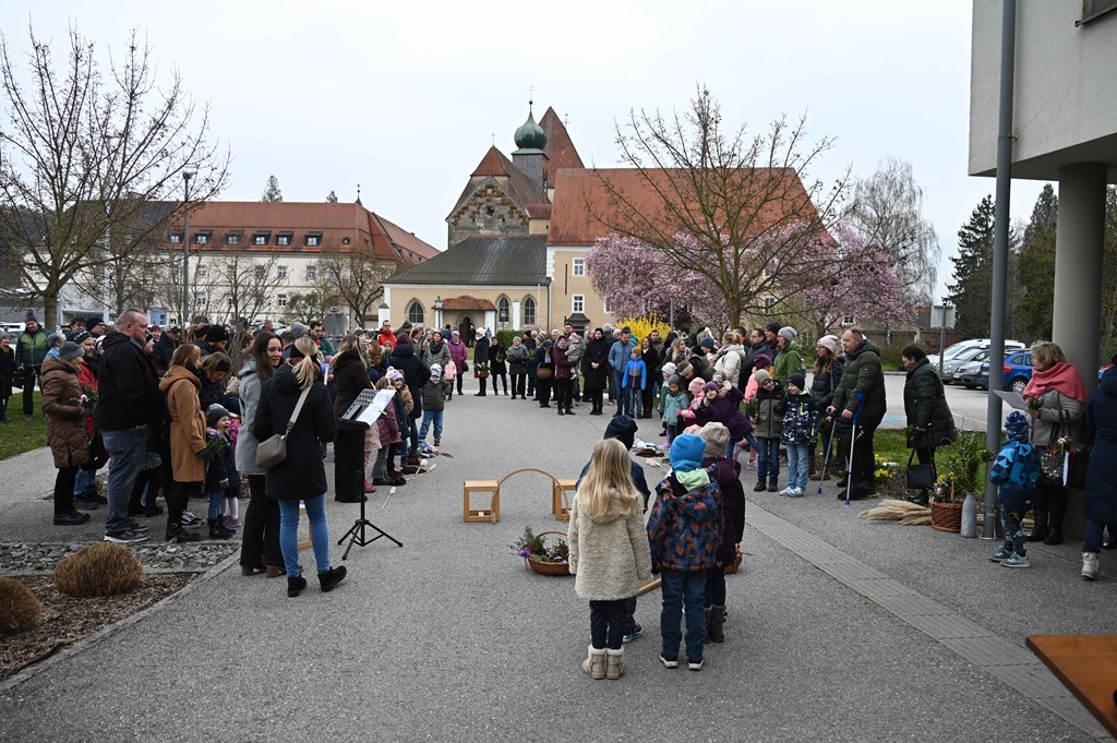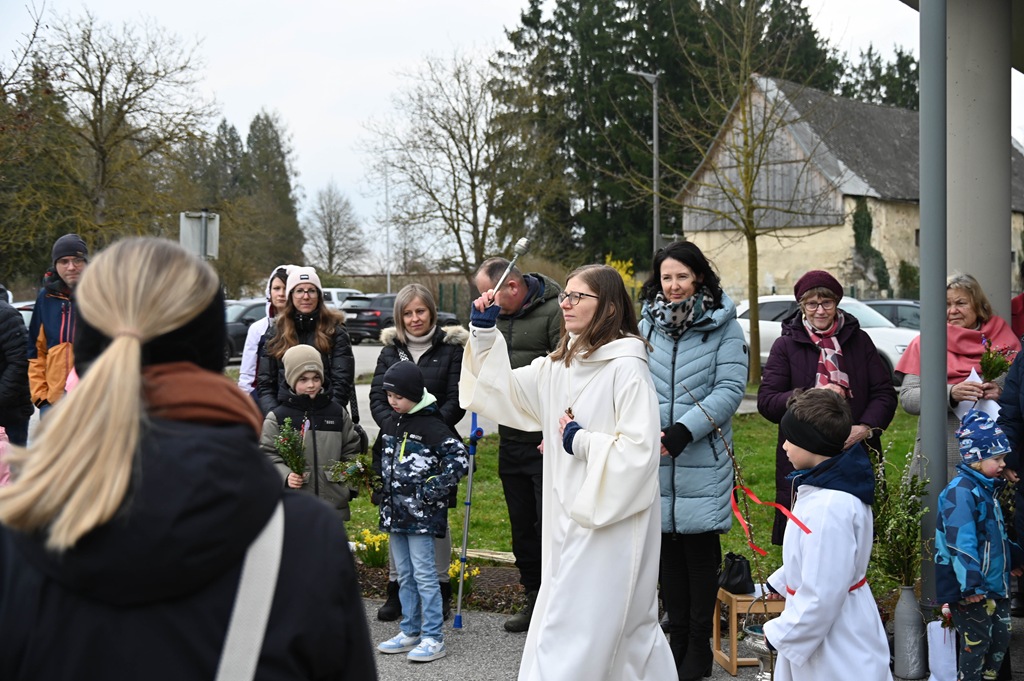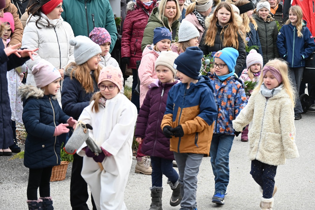 Nach zwei Jahren „coronabedingter Pause“ war es uns heuer erstmals wieder möglich mit unseren Schulanfängerkindern beim Wortgottesdienst am Palmsonntag mitzugestalten. In einem kurzen Rollenspiel wurde der „Einzug in Jerusalem“ auch für die Bewohner/innen des Senioriums gut sichtbar, von den Kindern dargestellt. In der Pfarrkirche gestalteten wir weitere Beiträge zum Friedensgruß und nach der Kommunion.